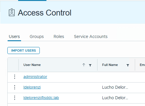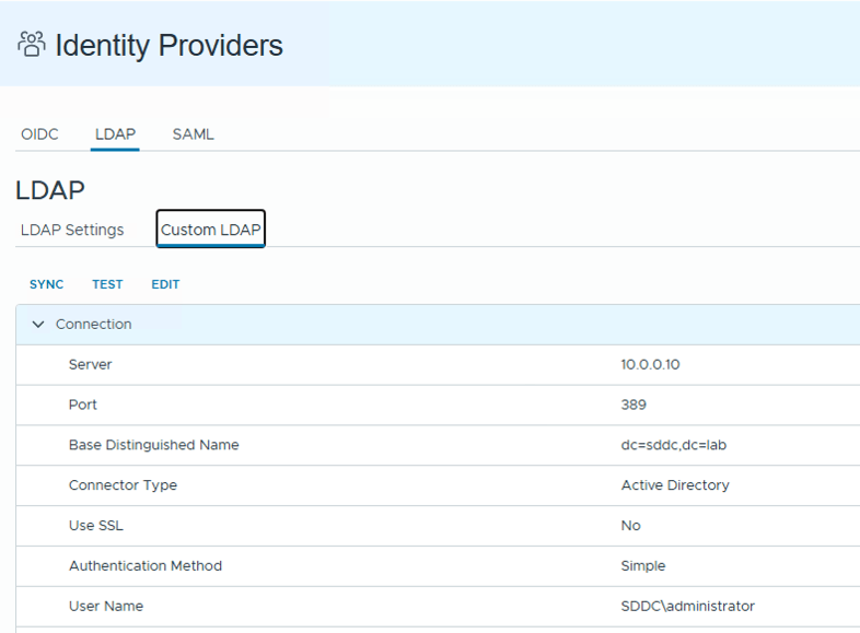 So we can configure, in the same tenant, an LDAP configuration (pointing to the same LDAP/AD that the VCF SSO connection is using, giving us access to the same users and groups)